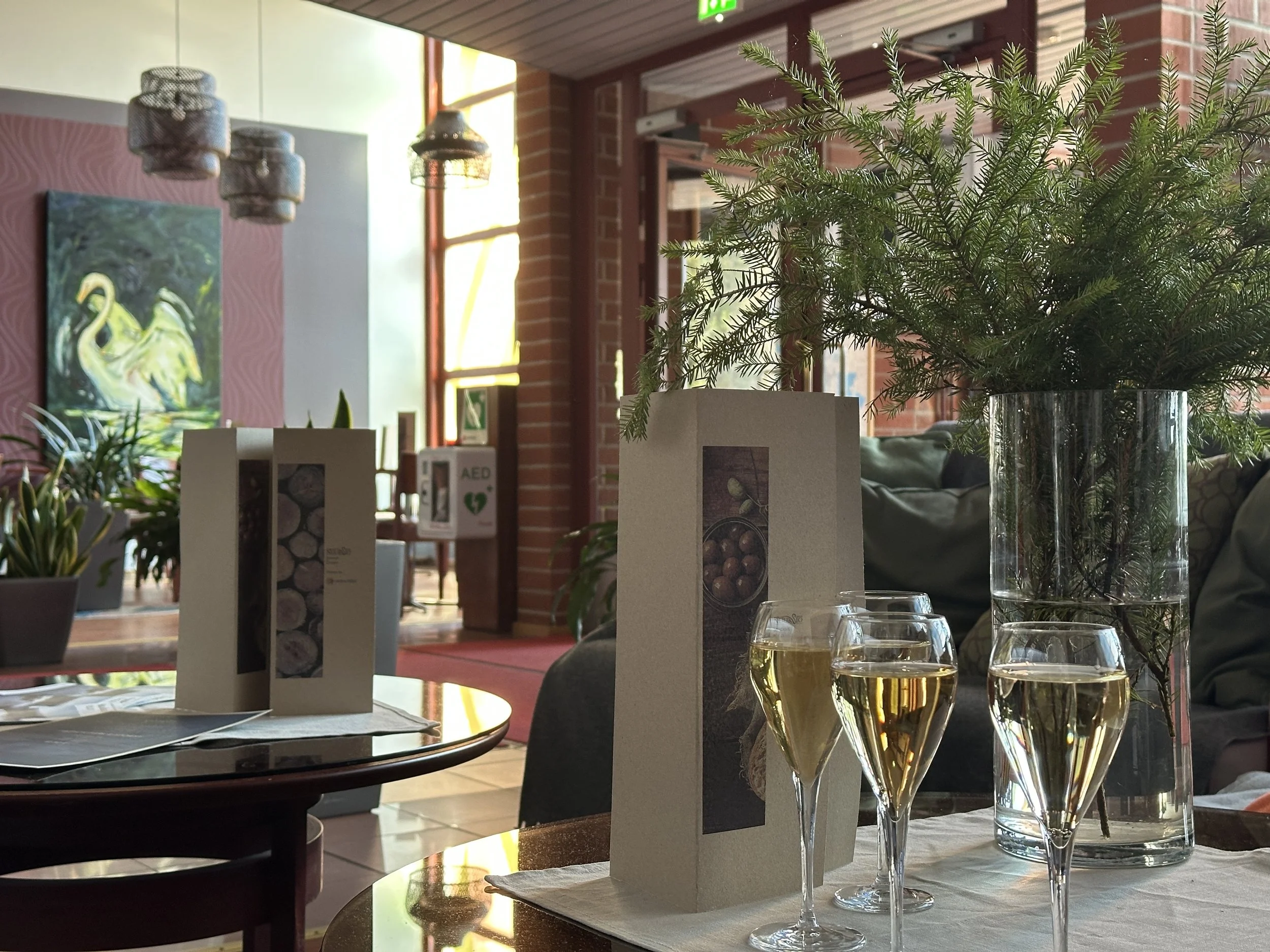 Tuvan aulabaari on paikka, jossa voi pysähtyä hetkeen – nauttimaan lasillisen, hyvästä seurasta ja Nuuksion ainutlaatuisesta tunnelmasta.