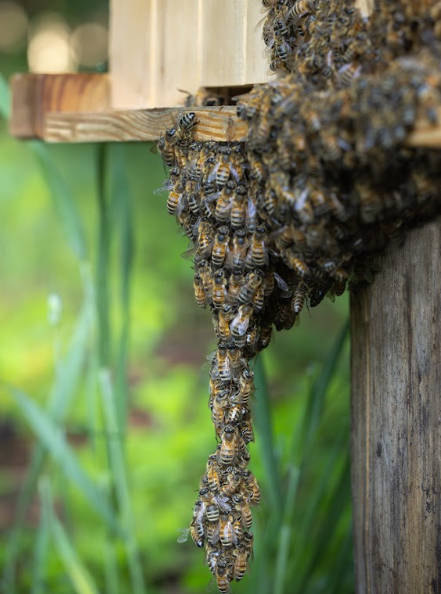 Ennen lähtemistään mehiläiset ovat alkaneet kasvattamaan pesään uutta kuningatarta joka syntyessään ottaa vallan vanhassa pesässä. Näin yhdestä elämästä tuli kaksi.